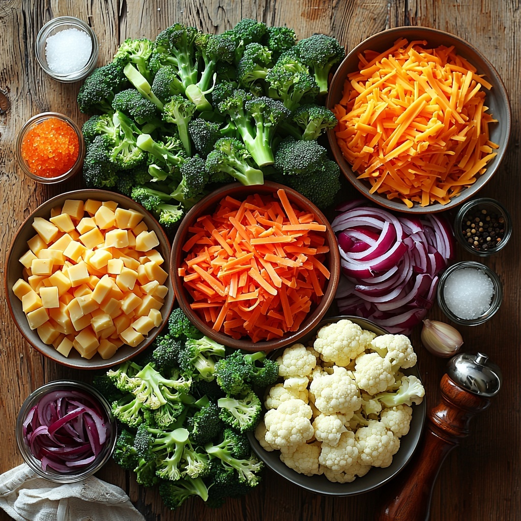 • 3 cups cauliflower florets (blanched): Adds a lovely contrast in texture and mild sweetness to balance the broccoli.