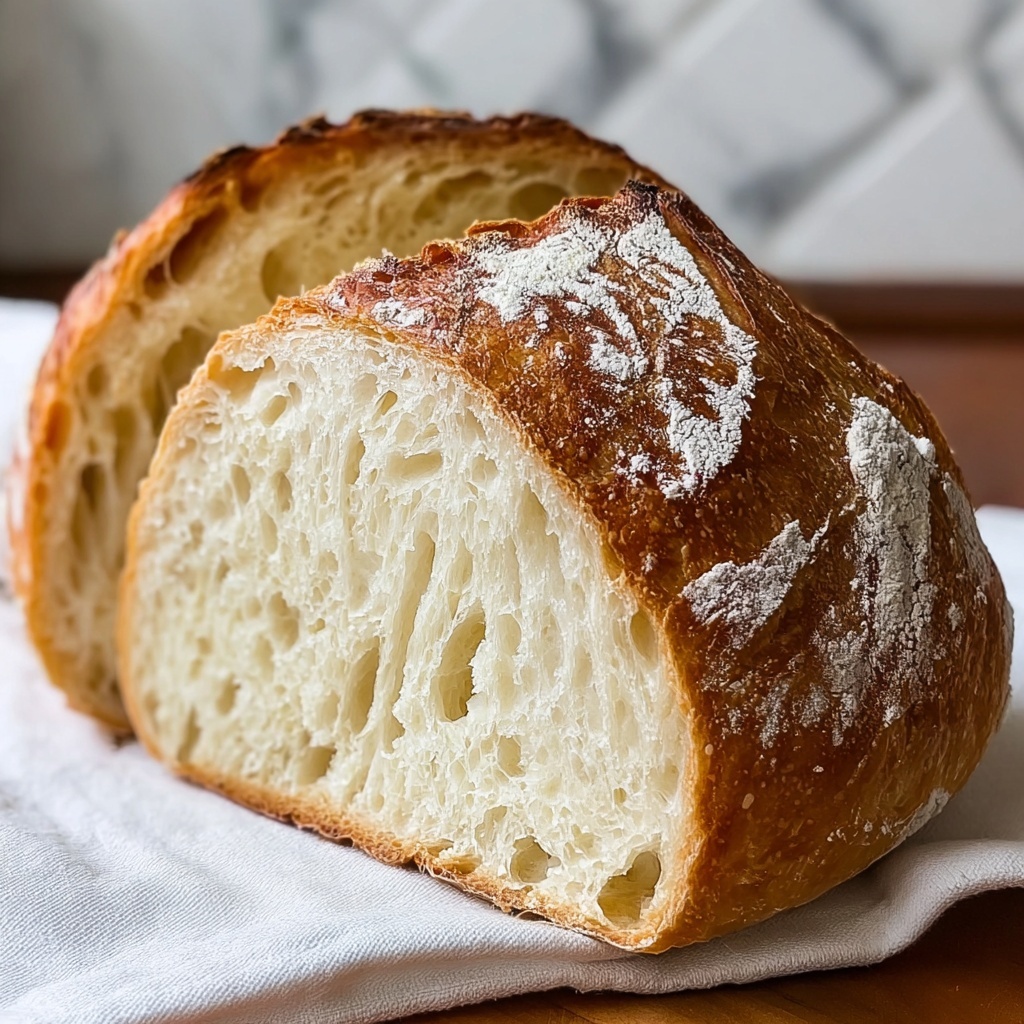This Artisan Bread Recipe yields a rustic, crusty loaf with a soft, chewy interior. Made from simple ingredients like flour, water, yeast, and salt, this bread requires minimal hands-on time but benefits from a long fermentation for enhanced flavor. Baked in a hot oven with steam, it achieves a beautiful golden crust ideal for sandwiches, toasts, or enjoying with butter.