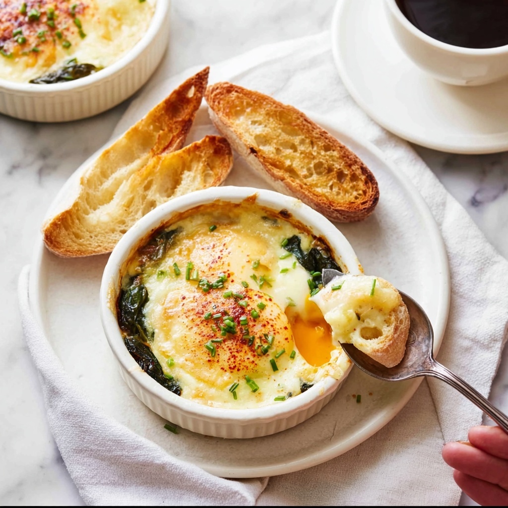 This dish pairs beautifully with crusty artisan bread or toasted sourdough, perfect for dunking into those luscious yolks. For a fuller brunch, consider serving alongside a fresh green salad with lemon vinaigrette, or roasted cherry tomatoes to bring sweet acidity and texture diversity.