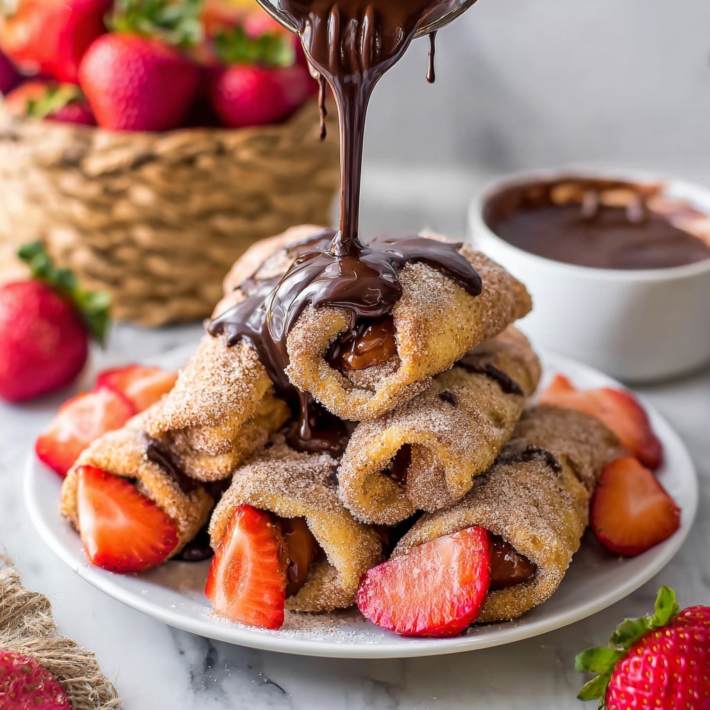 A handful of fresh, sliced strawberries adds a burst of color and a tart freshness that complements the gooey warmth of churros and rich sauce. You could also sprinkle some powdered sugar for a finishing touch that looks and tastes delightful.