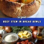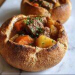 - Serve: Ladle the hot beef stew into the toasted bread bowls and serve immediately for a cozy and filling meal.
