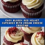 These Bloody Red Velvet Cupcakes are a spooky and delicious treat perfect for Halloween or any festive occasion. Featuring a classic red velvet cake base with a rich cream cheese frosting, these cupcakes are creatively decorated with red gel icing to give a dramatic ‘blood-spattered’ effect that will impress your guests both visually and in taste.