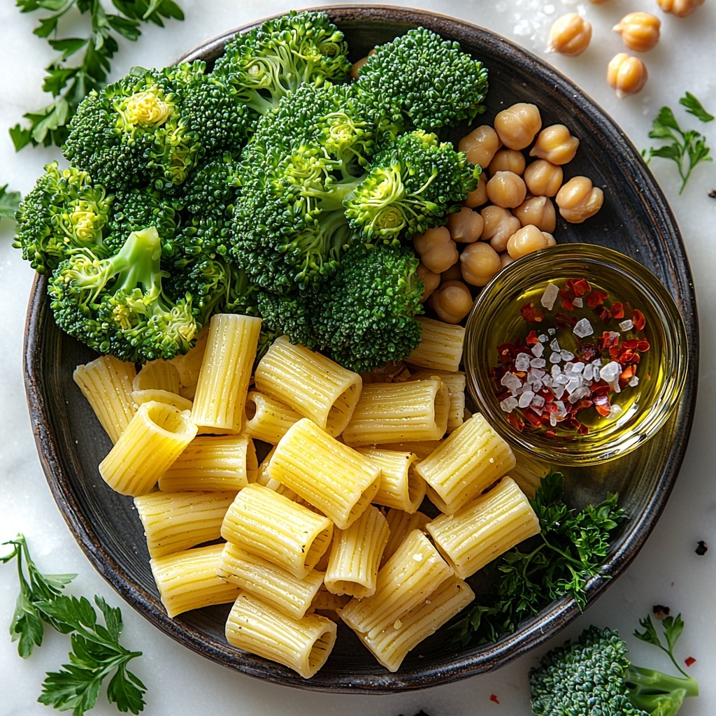 Broccoli Chickpea Pasta with Garlic Olive Oil Recipe