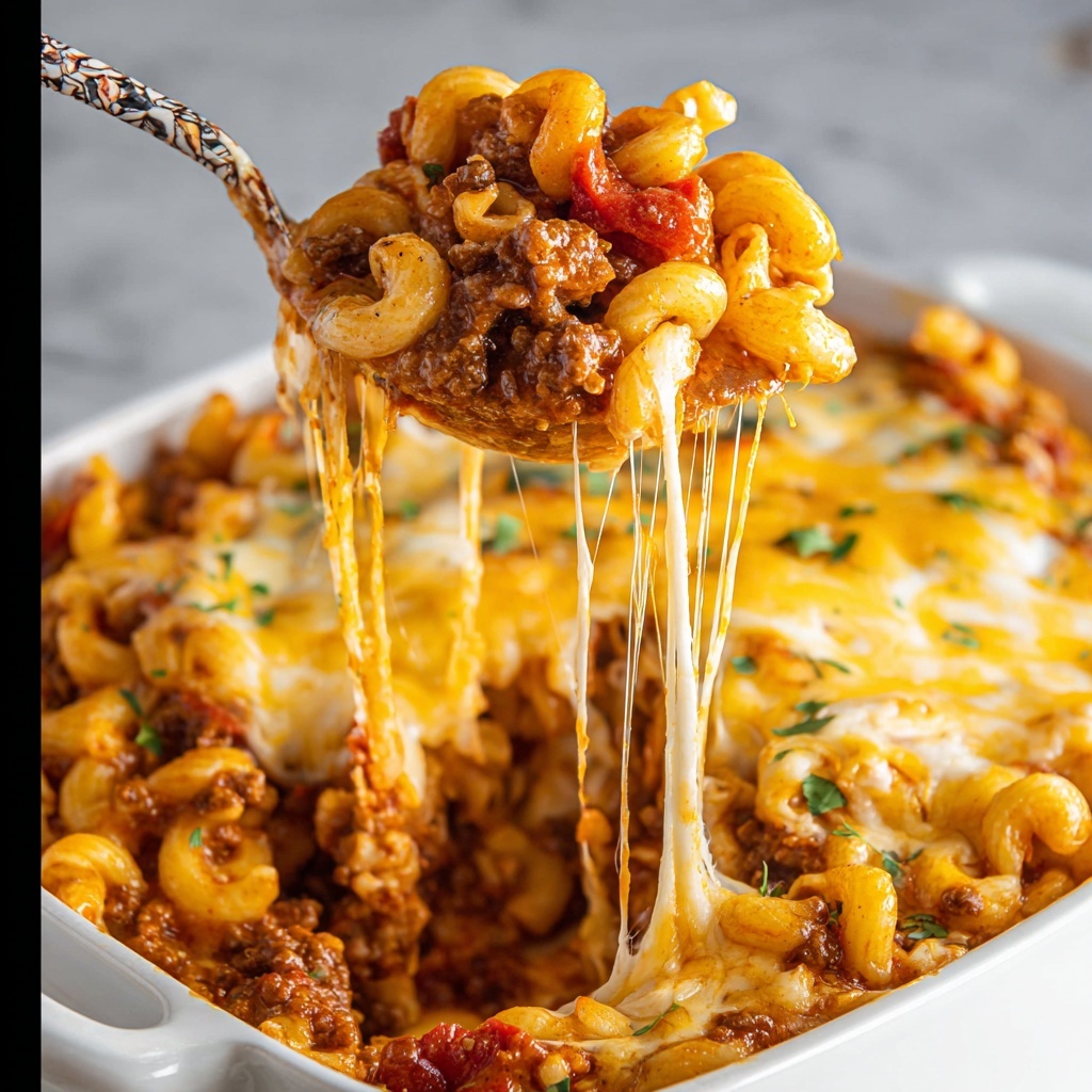 This Cheeseburger Casserole combines all the classic flavors of a cheeseburger into a comforting baked pasta dish. Elbow macaroni is mixed with seasoned ground beef, tomato paste, diced tomatoes, and tangy dill pickles, then topped with melted mozzarella and cheddar cheese for a hearty family meal.