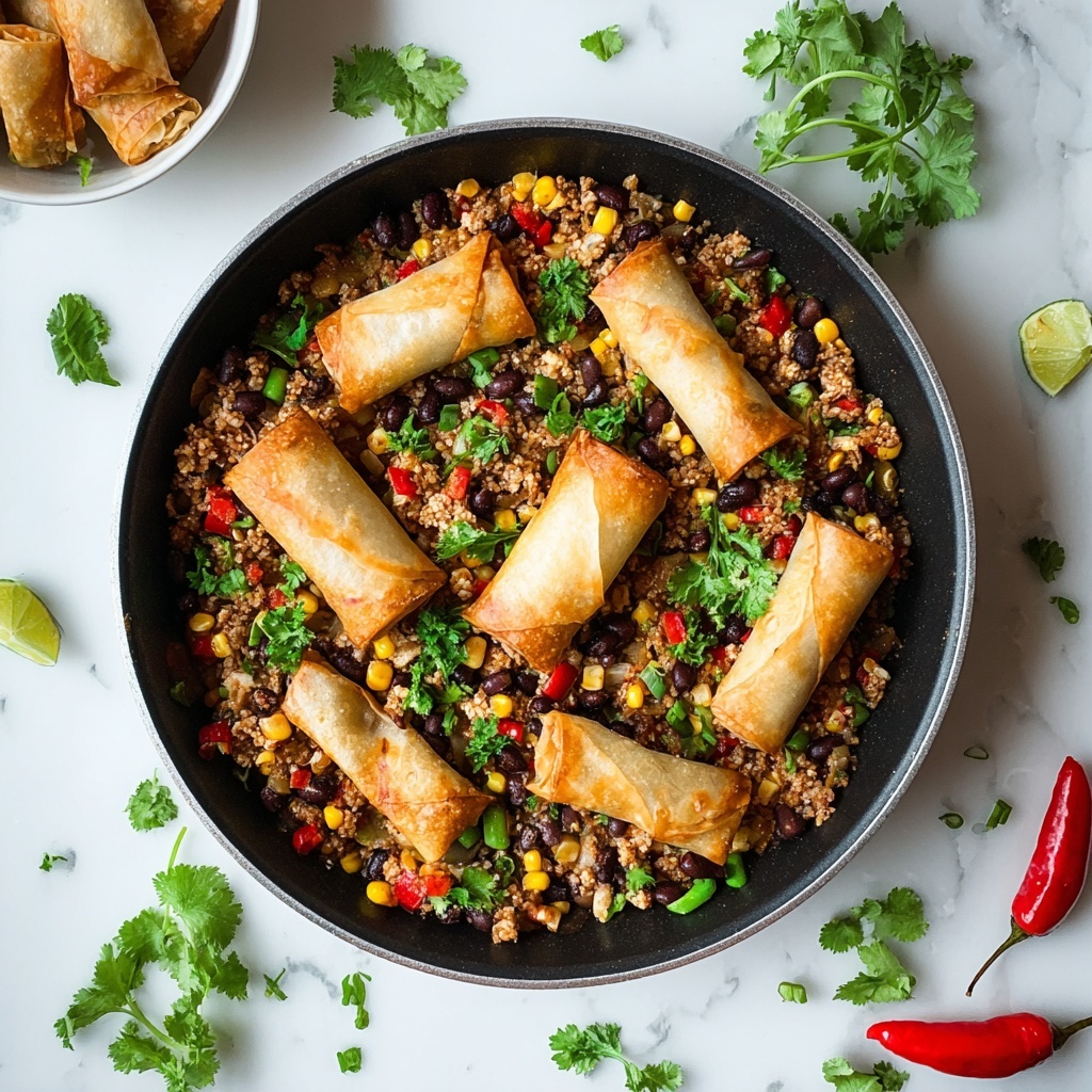 Pair these eggrolls with a crisp garden salad, a bowl of Mexican street corn salad, or some smoky black beans. These sides balance the richness and bring bright, fresh elements to your meal.