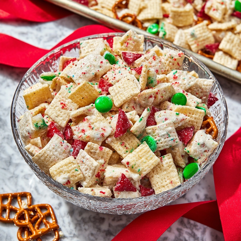 This mix pairs wonderfully with warm drinks like hot cocoa or mulled apple cider. Serving it alongside a selection of holiday cookies or fruit skewers provides a nice balance of indulgence and freshness, perfect for any gathering.