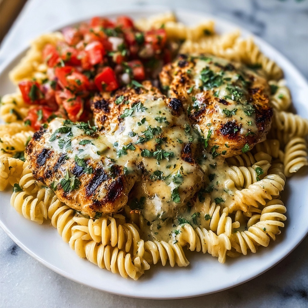 Creamy Garlic Parmesan Chicken with Cheesy Twisted Pasta Recipe