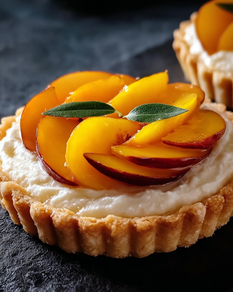 For a charming twist, arrange several mini peach tarts on a rustic wooden board with scattered peach wedges and edible flowers. Or serve them on pretty dessert plates with a fresh berry coulis drizzled around the edges for a restaurant-quality presentation at home.