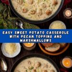 This Easy Sweet Potato Casserole is a comforting and classic side dish perfect for holiday meals or family dinners. Creamy mashed sweet potatoes are mixed with warm spices, butter, and brown sugar, then topped with a crunchy pecan streusel and mini marshmallows for a sweet, festive finish. The casserole is baked until bubbling and then toasted to your preferred marshmallow texture, providing a delicious balance of creamy, crunchy, and gooey textures.