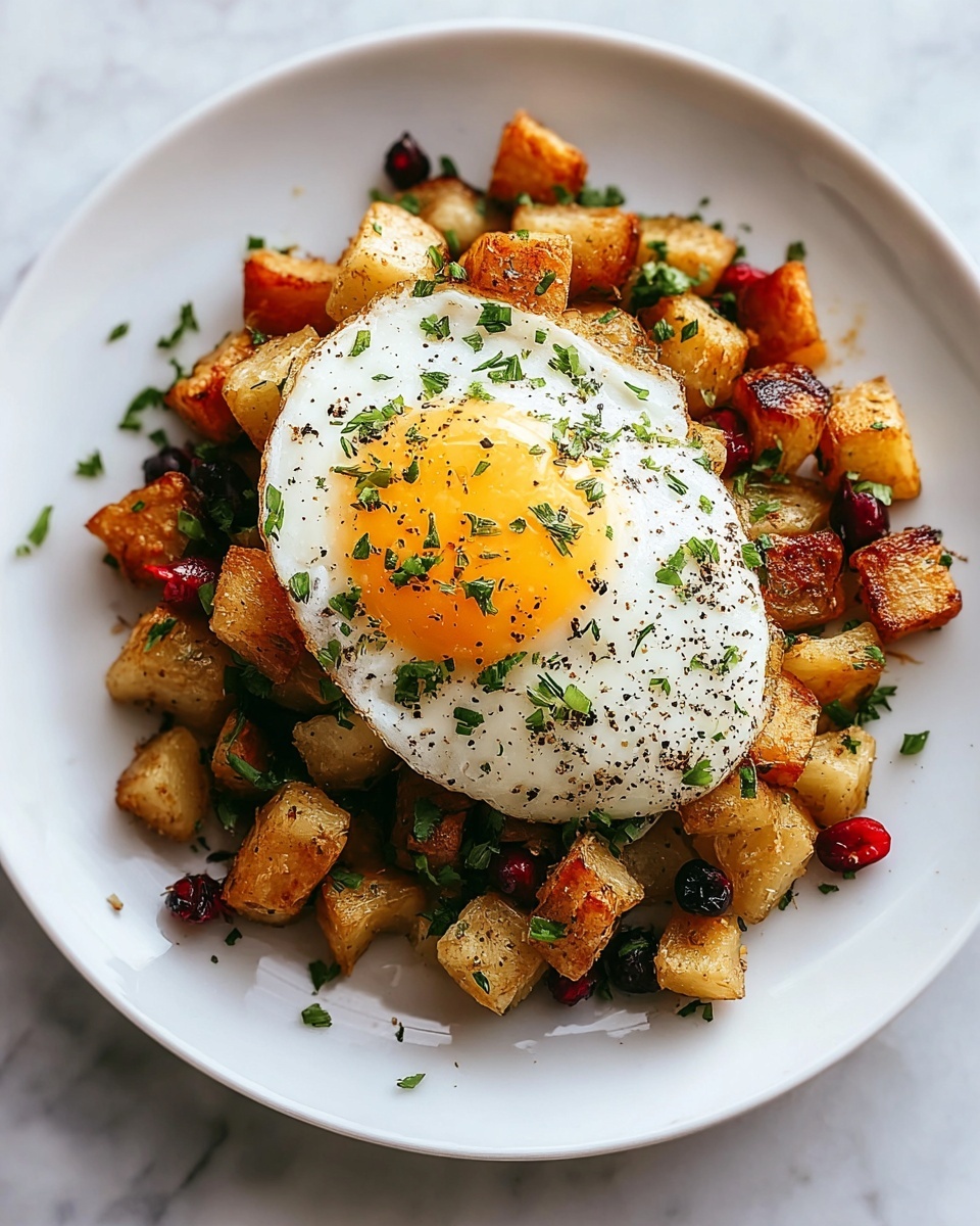 This hash pairs wonderfully with crusty toast to help soak up the runny yolk or a simple mixed leaf salad for freshness. If you want something heartier, roasted sweet potatoes complement the cranberry’s tartness beautifully.