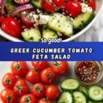 A refreshing and vibrant Greek Cucumber Tomato Feta Salad combining crisp cucumbers, juicy cherry tomatoes, tangy feta cheese, and a zesty olive oil and red wine vinegar dressing, perfect for a quick, healthy, and flavorful side dish or light meal.