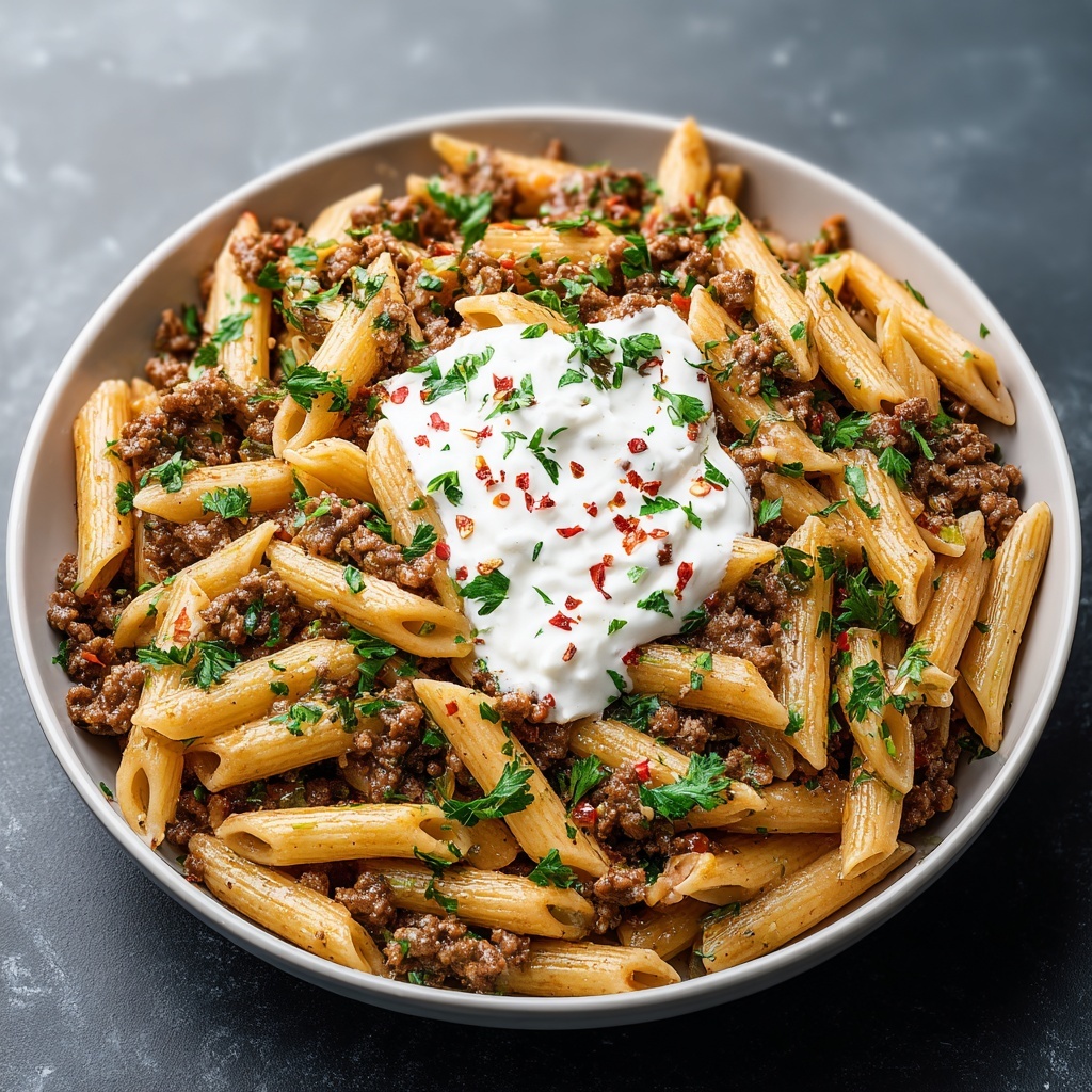 High-Protein Creamy Ground Beef Pasta: 20-Minute Comfort Food Recipe - Recipe Image