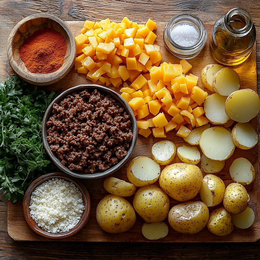 Gathering the right ingredients for this recipe is straightforward, and each one plays a crucial role in building the dish’s rich flavor and comforting texture. From the savory ground beef to the cheesy topping and the fragrant herbs, these essentials make sure your Hobo Casserole with Ground Beef and Potatoes Recipe turns out perfectly every time.