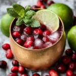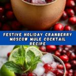 Celebrate the festive season with this refreshing Holiday Cranberry Moscow Mule cocktail. Combining tart cranberry juice, smooth vodka, zesty lime, and spicy ginger beer, garnished with fresh cranberries, lime slices, and mint for a vibrant and flavorful holiday drink. Perfect for warming up any holiday gathering with a sparkling, icy twist.