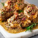 This Honey Mustard Chicken with Bacon is a flavorful and comforting dish featuring tender seared chicken breasts simmered in a rich sauce made with two types of Dijon mustard, honey, bacon, and fresh rosemary. The sauce is simmered to perfection, balancing savory, tangy, and sweet notes, making it ideal for a satisfying weeknight dinner.