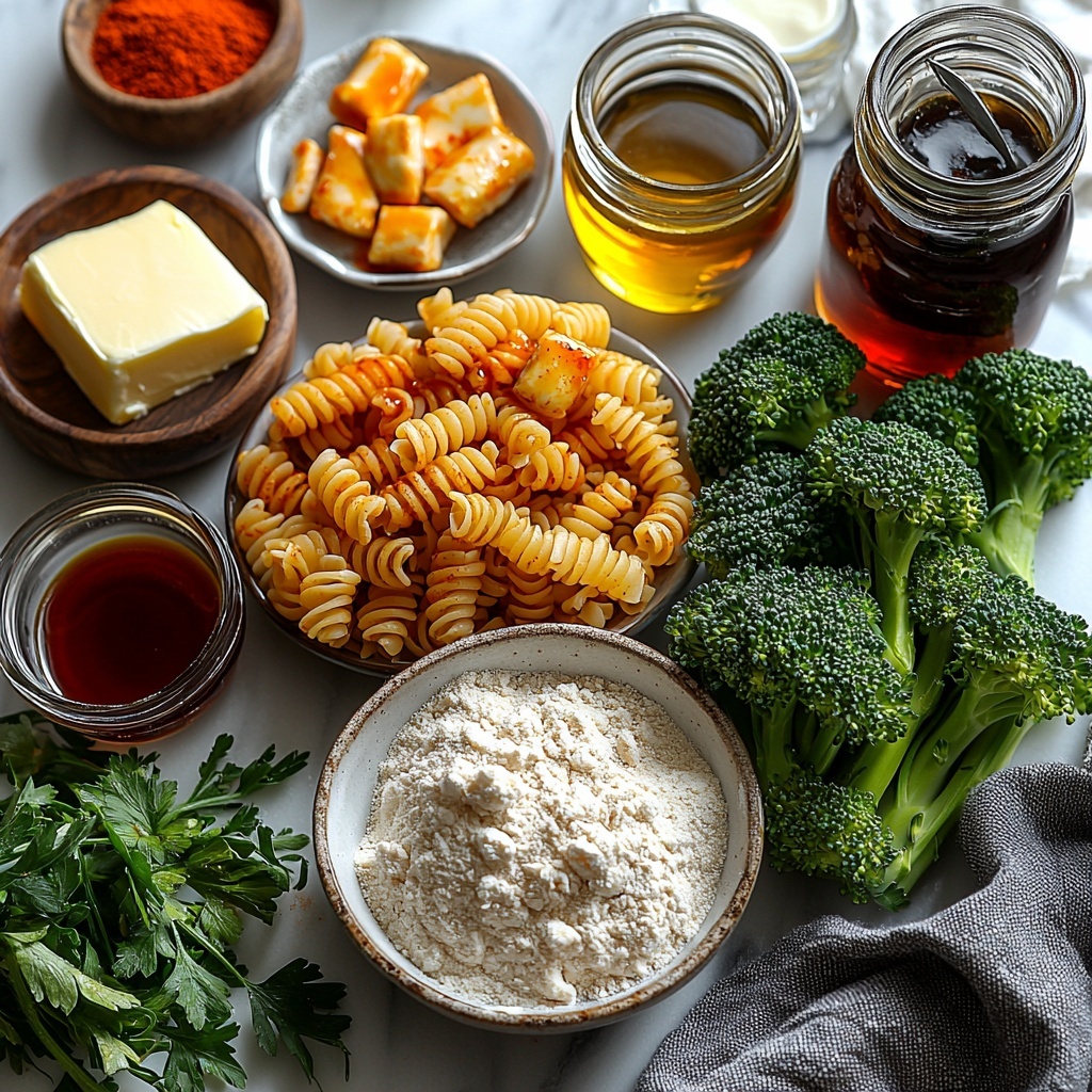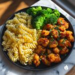 This recipe features irresistible hot honey garlic chicken bites paired with a creamy Cajun Alfredo pasta and roasted broccoli. Crispy fried chicken pieces are coated in a sweet and spicy honey garlic sauce, complemented perfectly by a rich and flavorful Cajun Alfredo rotini, finished with tender roasted broccoli for a complete, satisfying meal ideal for family dinners or entertaining guests.