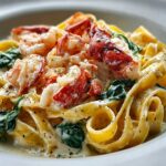 This Irresistibly Creamy Lobster Alfredo Pasta is a luxurious and flavorful dish perfect for a romantic date night. Featuring tender lobster tail meat enveloped in a rich, buttery Parmesan cream sauce, tossed with perfectly cooked fettuccine and optional fresh spinach for a vibrant touch. This indulgent pasta combines aromatic garlic, a hint of lemon brightness, and creamy textures that melt in your mouth, making every bite a delightful experience.