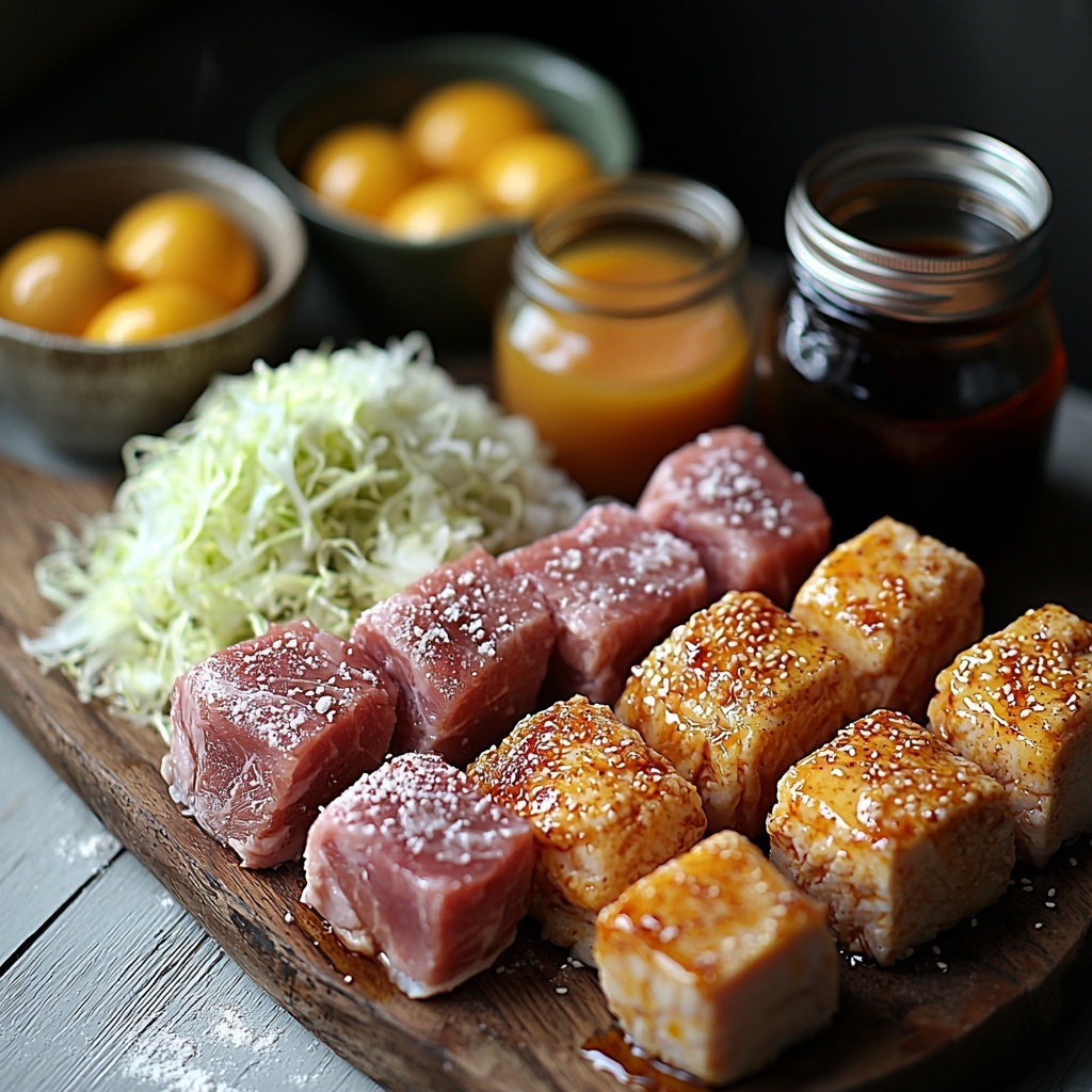 Each component in this Japanese Katsu Bowls with Tonkatsu Sauce Recipe plays a crucial role, from the tender, breaded cutlets delivering crunch to the tangy and sweet tonkatsu sauce tying everything together. The ingredients are straightforward, focusing on freshness and texture to recreate this classic dish with ease.