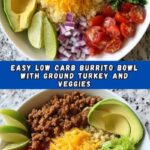 This Low Carb Burrito Bowl is a flavorful, healthy alternative to traditional burritos, featuring seasoned ground turkey or beef with sautéed vegetables, fresh cauliflower rice, and vibrant toppings like avocado, shredded cheese, and cilantro. Perfect for a quick, satisfying meal that’s grain-free and packed with nutrients.