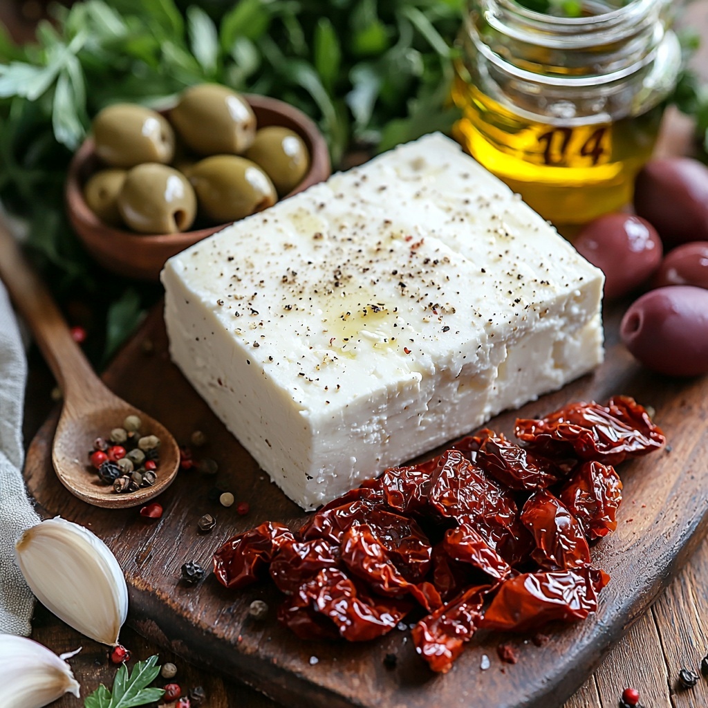 This Mediterranean Baked Feta with Olives & Sun-Dried Tomatoes Recipe shines best alongside simple, complementary sides. Think warm pita bread for dipping, crunchy cucumber slices, or a crisp green salad dressed lightly with lemon and olive oil to balance the richness of the cheese.