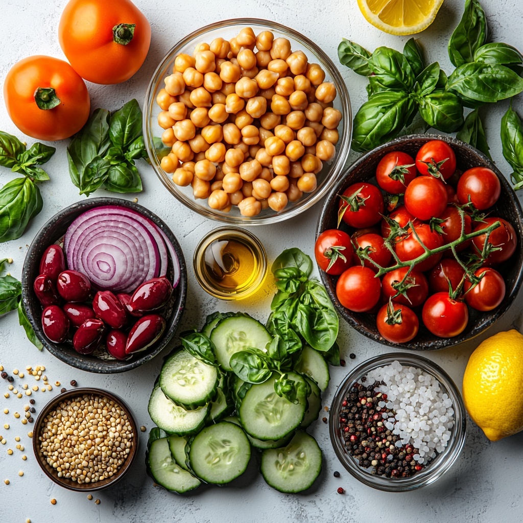 Gathering the right ingredients is the first step toward creating a Mediterranean Quinoa Salad Recipe that sings with flavor. Each component contributes something special—whether it’s the fluffy quinoa providing a hearty base, the tender chickpeas adding protein, or the colorful vegetables lending crispness and freshness.