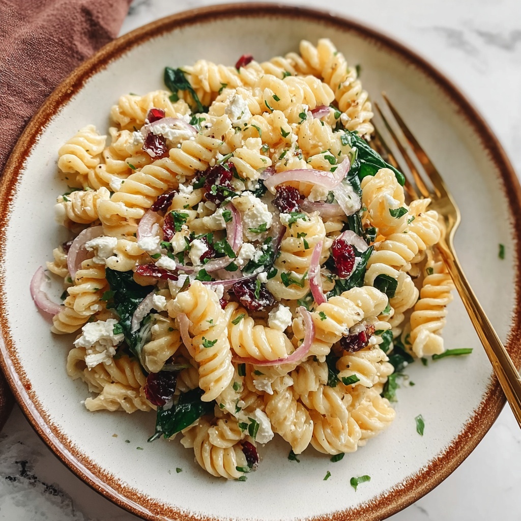 Nutritious Spinach Pasta Salad with Feta and Cranberries Recipe