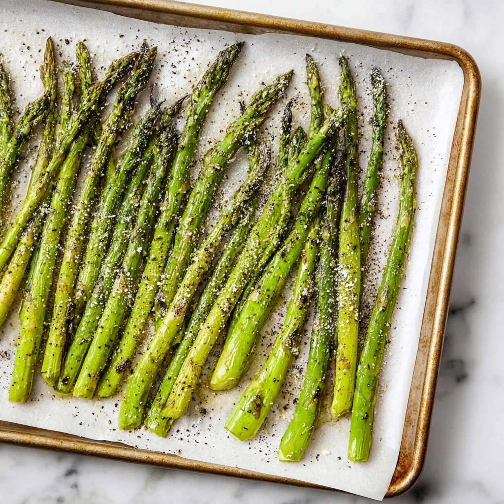 Lay the asparagus in a single layer on a parchment-lined baking sheet. Spacing them evenly allows the heat to circulate and roast each spear evenly without steaming.