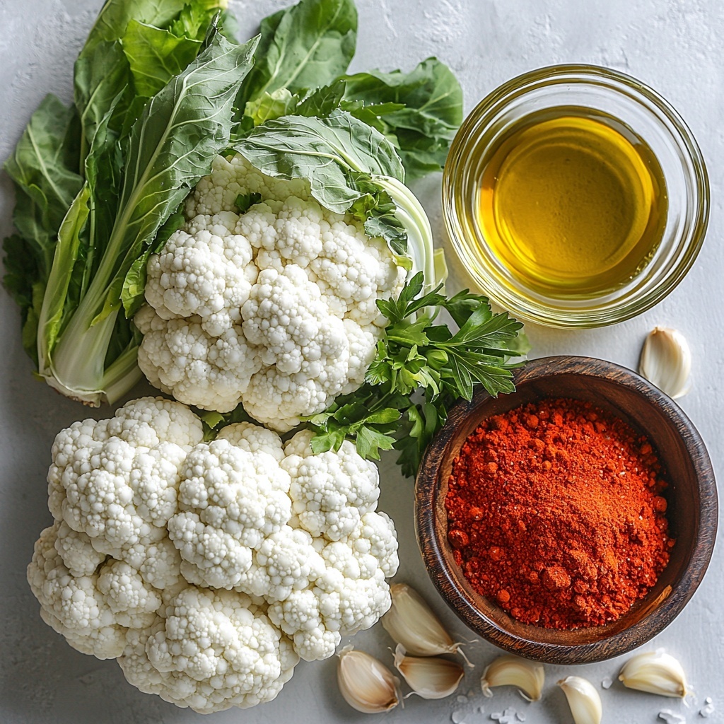 The magic of this Roasted Cauliflower Steaks Recipe lies in its straightforward ingredients. Each one plays a vital role in building layers of flavor, texture, and vibrant color. These staples transform simple cauliflower heads into a memorable dish that’s both hearty and healthy.