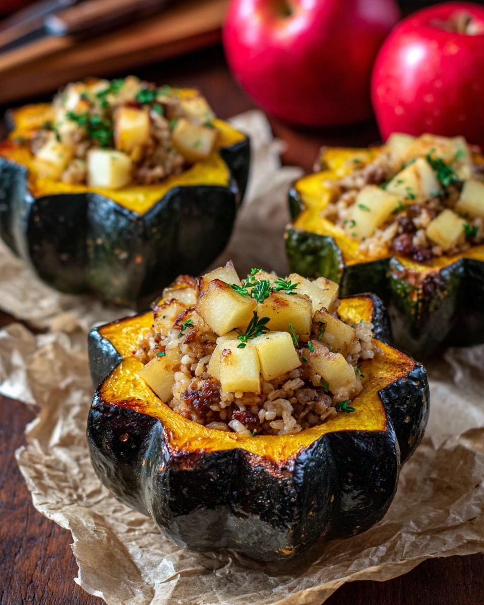 Getting your ingredients ready for this Sausage Stuffed Acorn Squash Recipe couldn’t be easier. Each component plays a crucial role, whether to add depth of flavor, texture contrast, or vibrant color to the dish. From the natural sweetness of apples to the fragrant herbs and wholesome brown rice, you’ll find that these ingredients work beautifully together to create a satisfying and balanced meal.