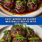 These Savory Spicy Mongolian Glazed Meatballs are a flavorful twist on a classic appetizer. Made with ground beef or pork, mixed with fresh scallions, garlic, and ginger, these tender meatballs are pan-fried to a golden brown and then coated in a sweet and spicy Mongolian-inspired glaze featuring soy sauce, honey, rice vinegar, and Sriracha. Garnished with sesame seeds and additional scallions, they make for a perfect party snack or a tasty main dish served over rice or noodles.