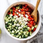 If you find yourself with leftovers (though it’s rare with this salad!), store it covered in the fridge. The fresh vegetables can hold their crunch for up to 2 days if you keep the dressing separate until serving. Adding dressing too soon may cause the veggies to release water and get soggy.