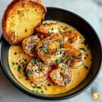 Delicious and easy-to-make Shrimp Scampi Bowls served with warm garlic bread. Tender sautéed shrimp cooked in a flavorful garlic butter sauce with a splash of white vinegar and lemon juice, perfectly complemented by crispy, golden garlic bread. Ready in just 25 minutes, this meal is perfect for a quick weeknight dinner that feels special.