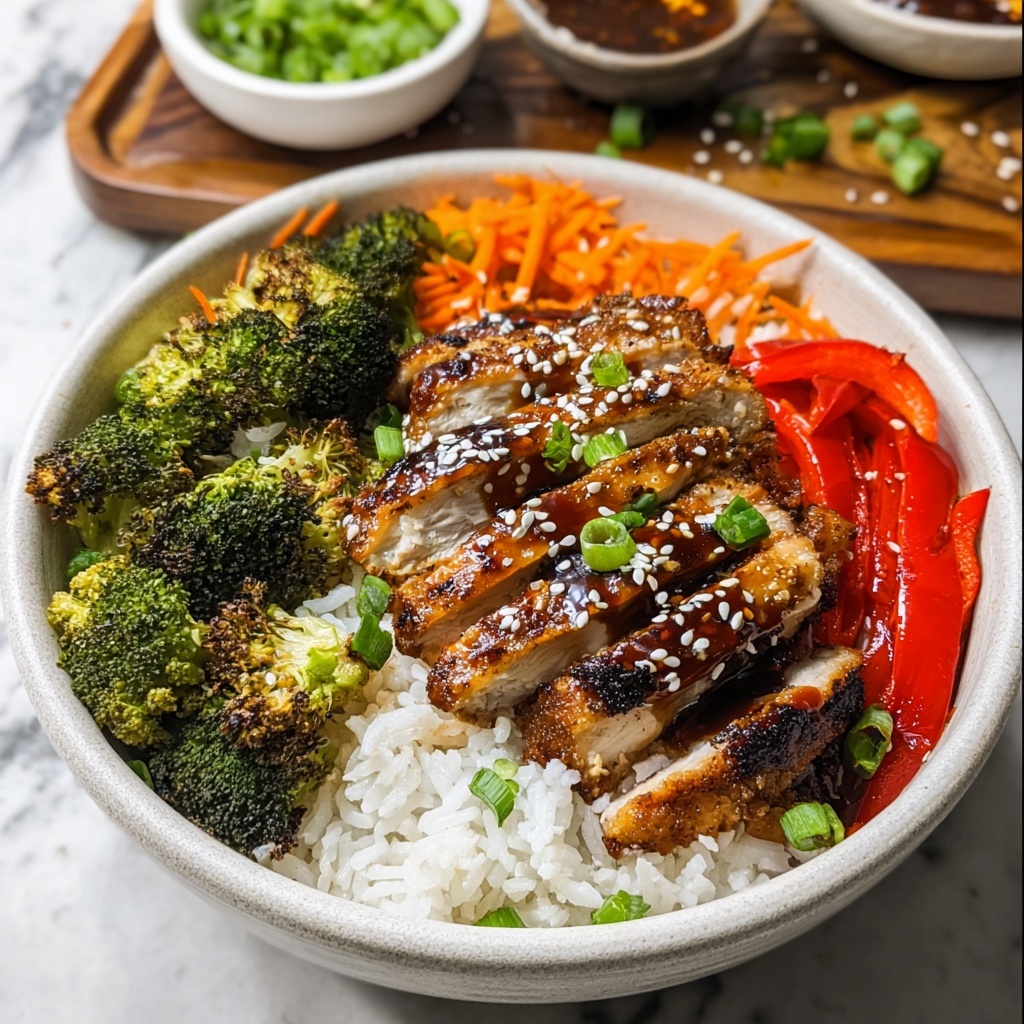 Sprinkle toasted sesame seeds and sliced green onions over each bowl. These garnishes add that final touch of crunch, freshness, and visual appeal that turns your Teriyaki Chicken Bowls Recipe from a simple dish into a feast for the senses.
