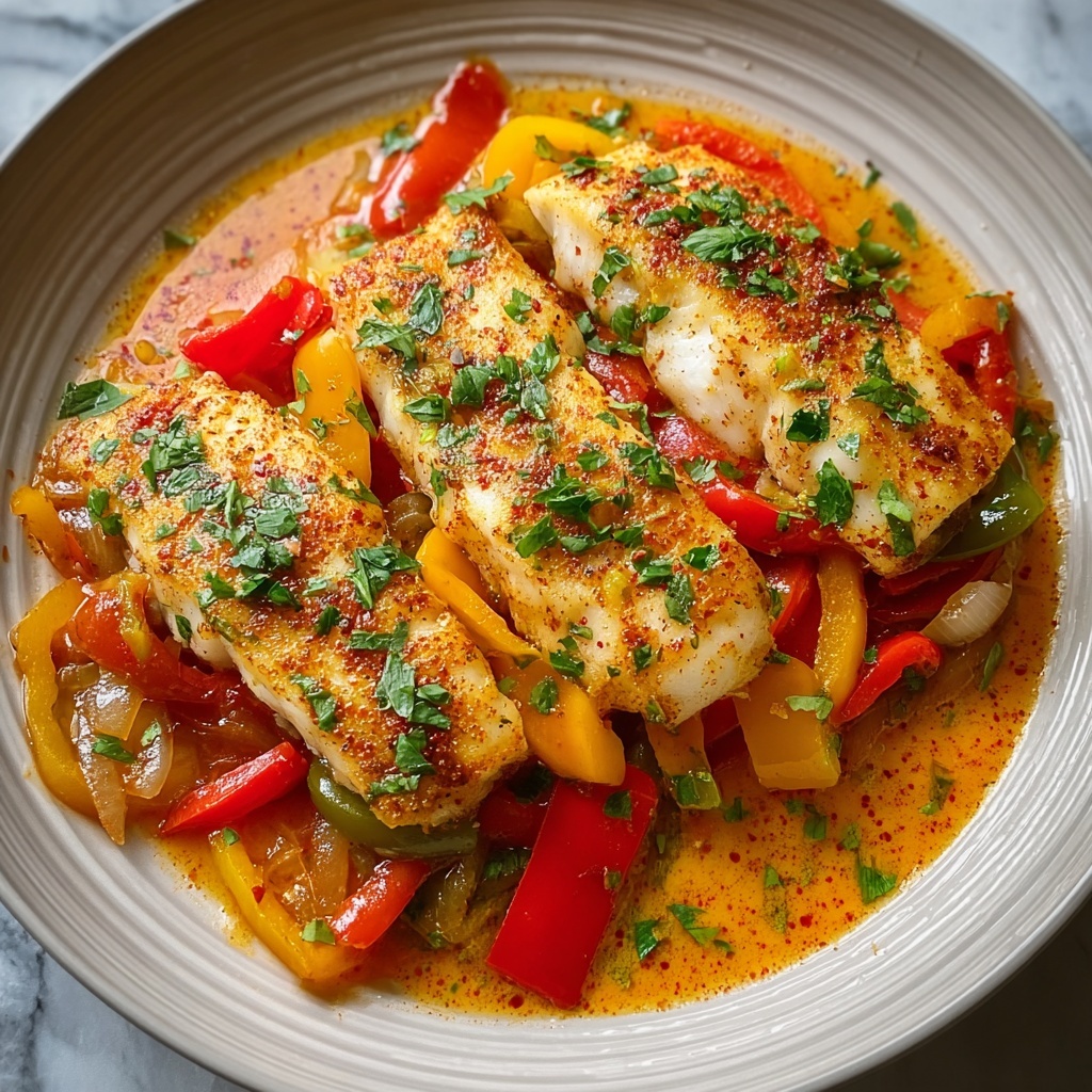 A flavorful and healthy dish featuring tender tilapia fillets simmered in a vibrant roasted red and yellow bell pepper sauce infused with garlic, smoked paprika, and a hint of lemon. This easy skillet recipe combines fresh ingredients and simple techniques to create a colorful, satisfying meal perfect for weeknight dinners.