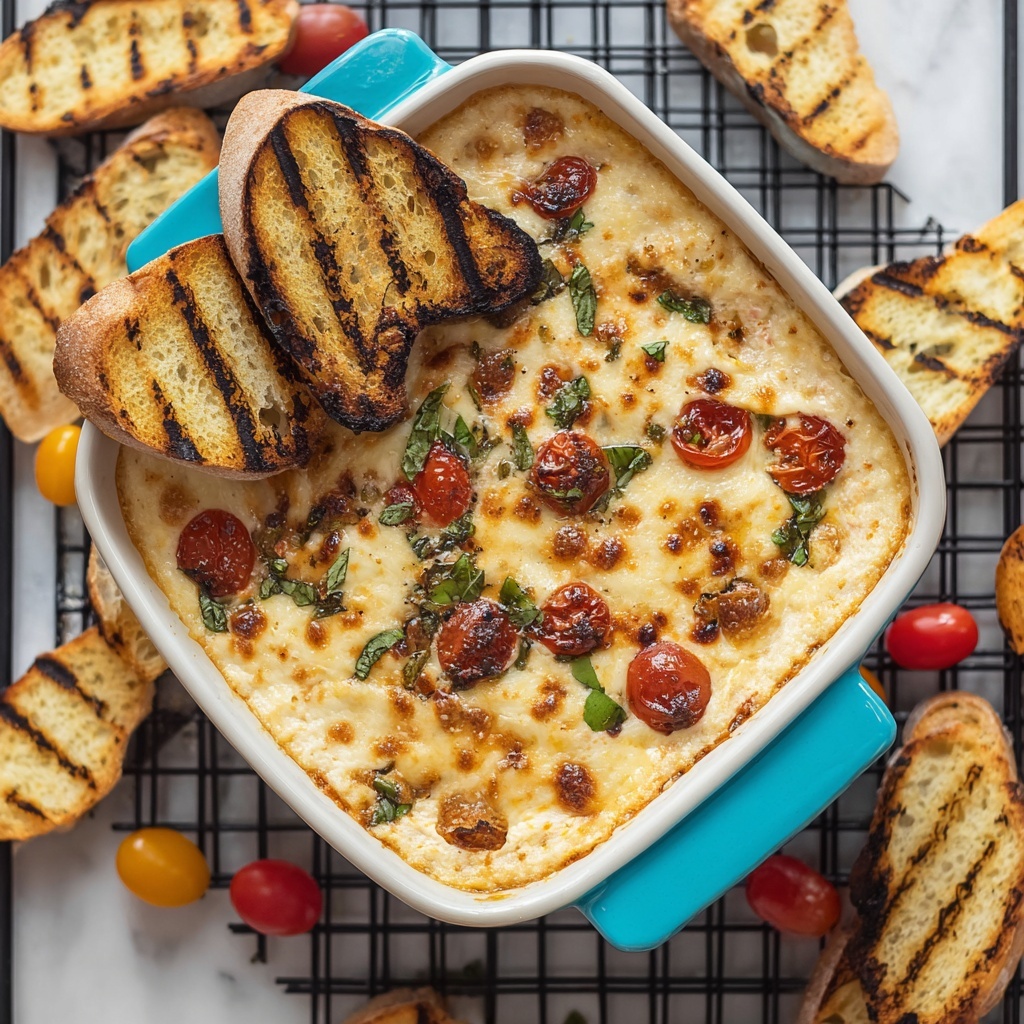 For a fun twist, you can serve the dip in mini bread bowls or hollowed-out tomatoes to keep with the Caprese theme. Alternatively, try layering the dip in a clear glass dish to show off the beautiful layers of cheese, basil, and tomatoes. It’s a guaranteed crowd-pleaser both visually and gastronomically.