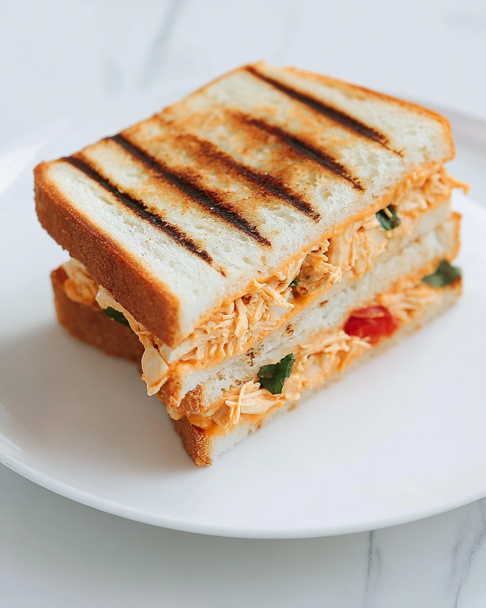 Heat a skillet over medium heat and add half the butter. When melted, carefully place your sandwiches in the pan. Grill each side for about 3 to 4 minutes until the bread turns a gorgeous golden brown and the cheese inside melts to perfection. Add more butter as needed to keep that crust crisp and flavorful. Keep your eyes on the skillet—you want just the right level of toasty and melty magic.