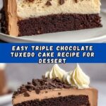 Tuxedo Cake is an elegant triple chocolate mousse cake featuring moist chocolate cake layers paired with rich dark and white chocolate mousses. This dessert combines the deep flavors of dark, white, and milk chocolate, layered beautifully to create a show-stopping centerpiece perfect for special occasions.